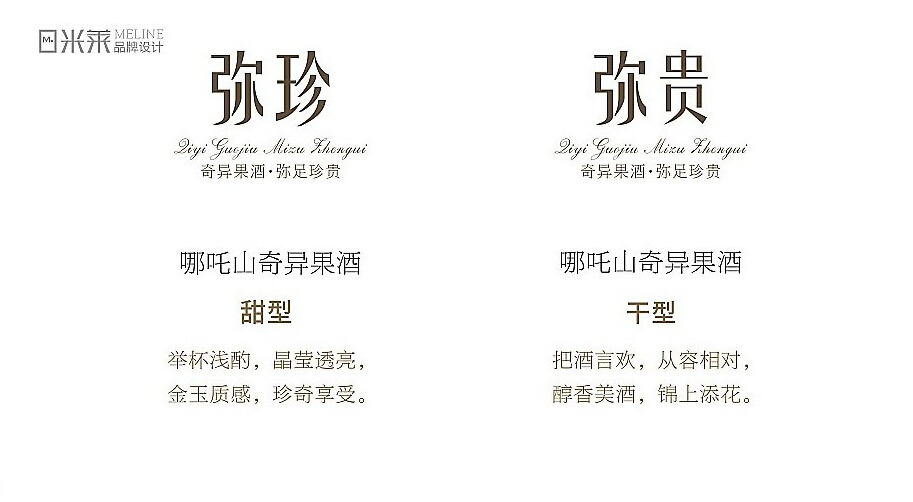 经过策划分析,米莱团队最终确定以“弥珍”、“弥贵”作为产品名称,采用特点突出的奇异果剖面图作为视觉图形,为产品建立具有识别度的记忆点,全面表现“奇异果酒,弥足珍贵”的产品价值。